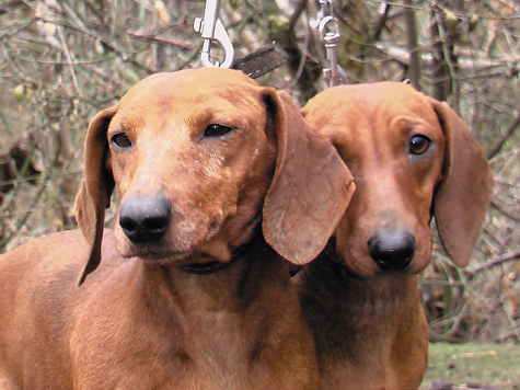 Опытная охотница такса Тана Мисси и ее молодая напарница Брунхильда. Фото Михаила Хилько Опытная охотница такса Тана Мисси и ее молодая напарница Брунхильда.