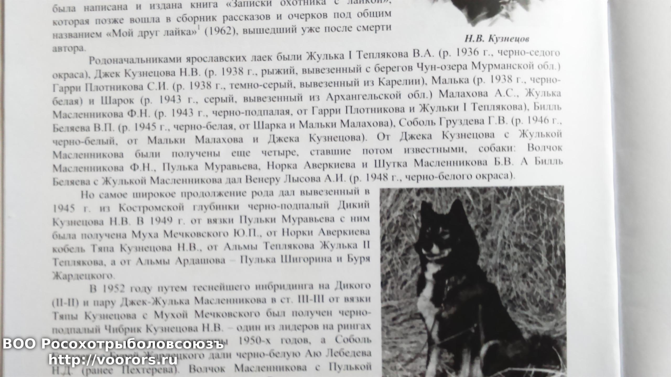 Таким образом, в породу русско-европейских лаек из Ярославской области вошла не только ч.Муха Ю.П. Мечковского, а в первую очередь ее отец Дикий Н.В. Кузнецова, а также Джек Кузнецова и Малька А.С. Малахова.