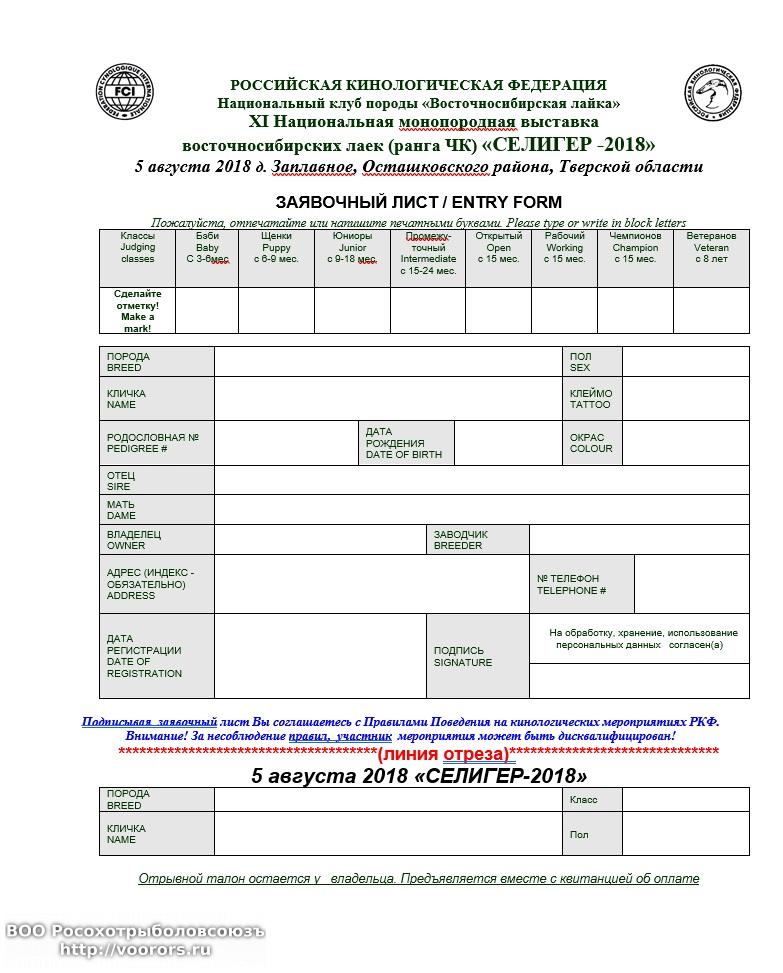 XI-я Национальная монопородная выставка восточносибирских лаек ранга ЧК «СЕЛИГЕР 2018» проводится 05.08.2018 г. в дер. Заплавное Осташковского района Тверской области. Регистрация участников с 9:00 05 августа 2018 г. Торжественное открытие выставки 10:00 05 августа 2018 г.