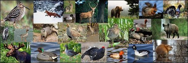 Законом разрешается охотиться на следующие виды охотничьей фауны: лосей, оленей, косуль, ланей, муфлонов, кабанов, зайцев, диких кроликов, выдр, барсуков, лисиц, куниц, хорей, ласок и горностаев, глухарей, тетеревов, рябчиков, фазанов, серых куропаток, диких уток, диких гусей, вяхирей, вальдшнепов, бекасов, дроздов, серых цапель, лысух, больших поганок, ястребов – тетеревятников и перепелятников, канюков – обыкновенных и зимних.