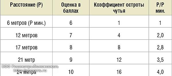 Что касается пересмотра дистанций внутри шкалы расстояний, то этот вопрос следует рассмотреть более подробно. Поскольку в отечественном охотничьем собаководстве полевые испытания собак имеют первостепенное племенное направление и их целью является определение племенной ценности собаки, то для легавых наиболее важная задача этих испытаний — это установление остроты обоняния, главного для рабочей собаки наследуемого признака.