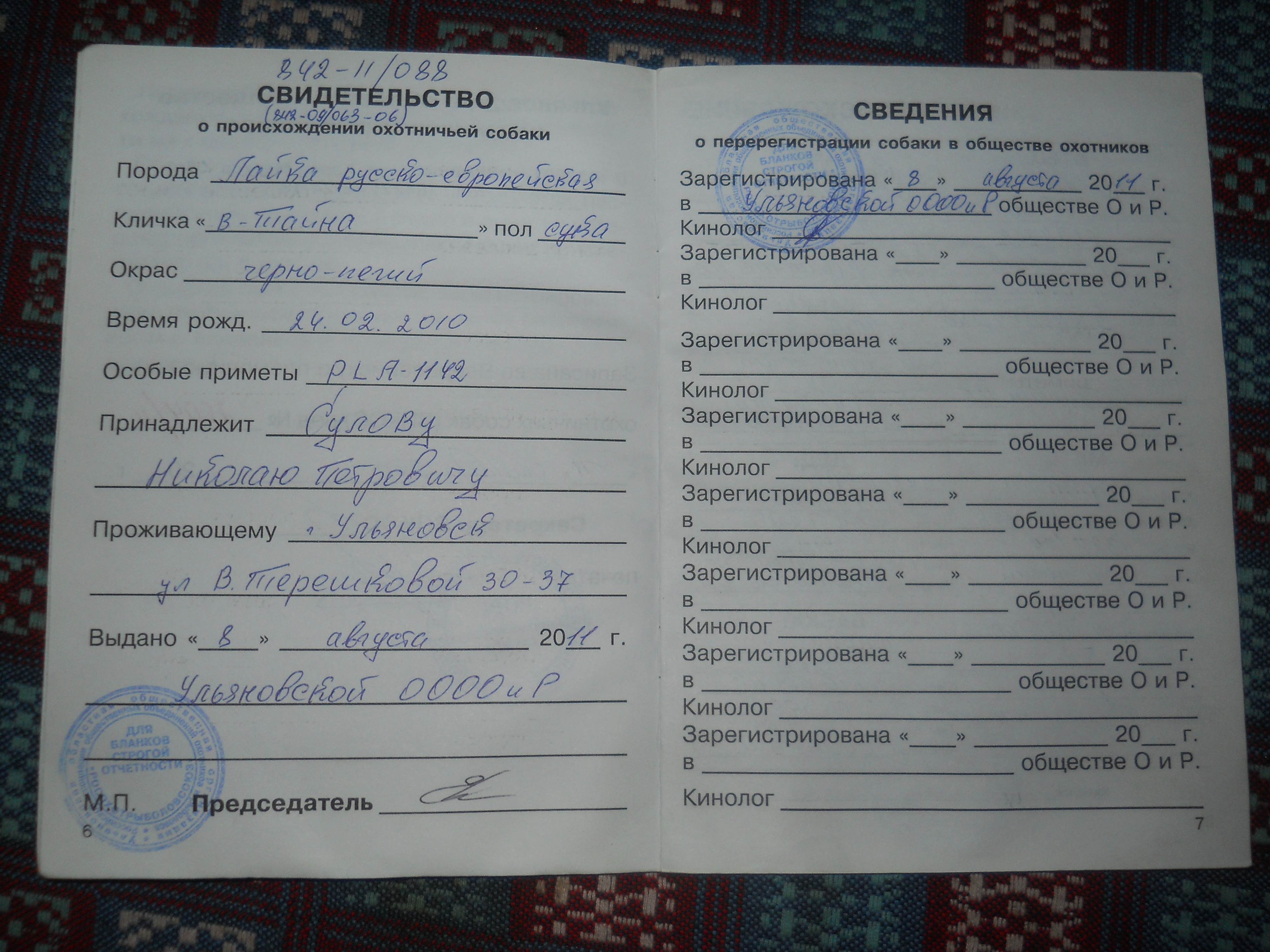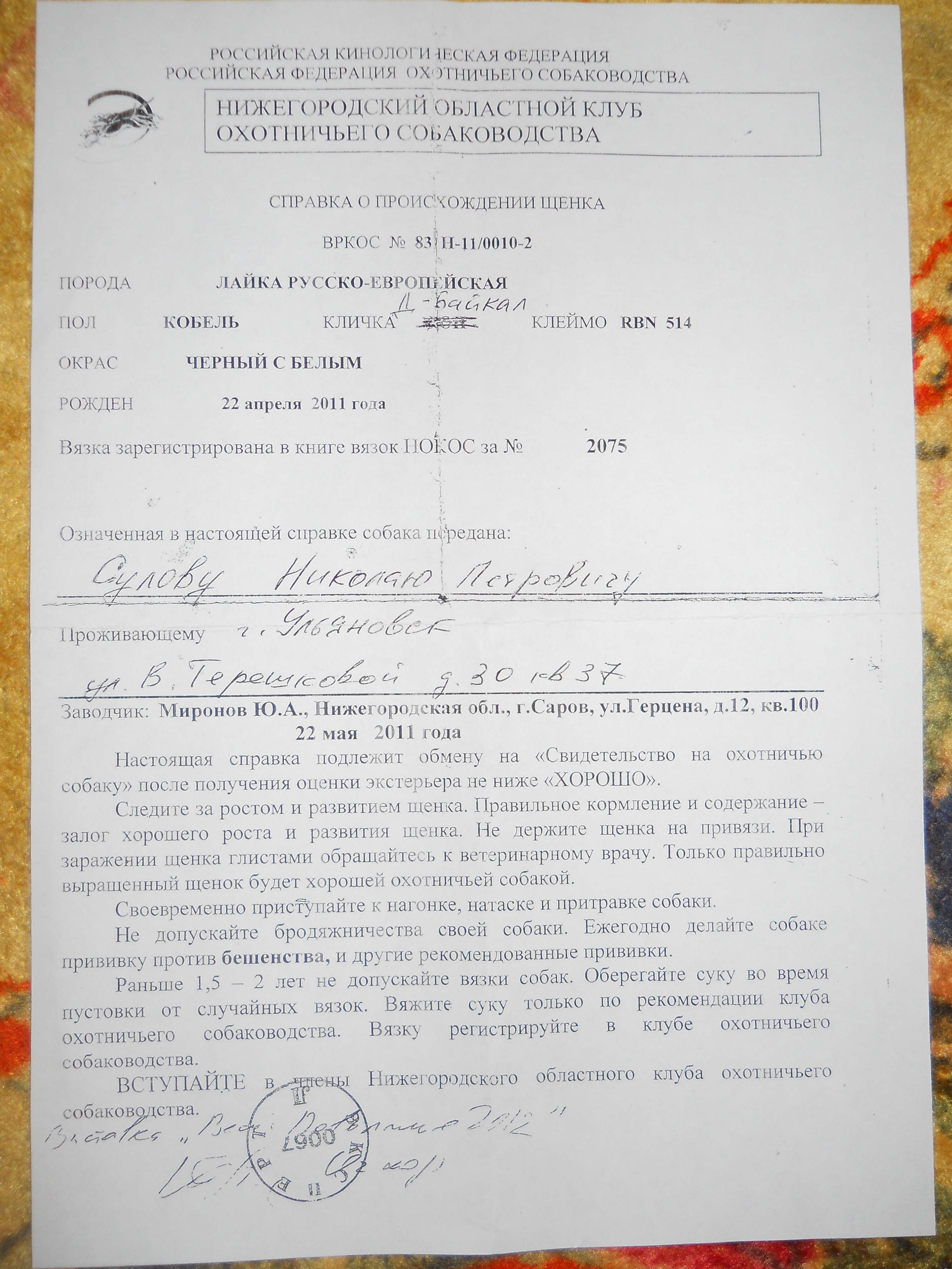 Зарегистрирован: 09 сен 2012, 19:40 Сообщения: 10 Имя: Николай Город: Ульяновск Собаки: РЕЛки Транспорт: УАЗ Оружие: ИЖ94 ТОЗ34 ООиР: УООООиР |