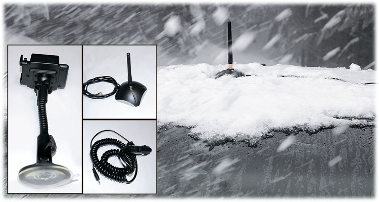 (Аксессуары для автомобиля включают в себя подставку для локализатора на присоске, внешнюю антенну с магнитным креплением, автомобильное зарядное устройство для батарей)