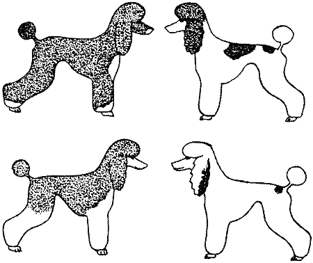 Рис. 17. Разные варианты белой пятнистости собакШирокую вариабельность, обусловленную генами-модификаторами, имеют чепрачный и тигровый окрасы собак.
