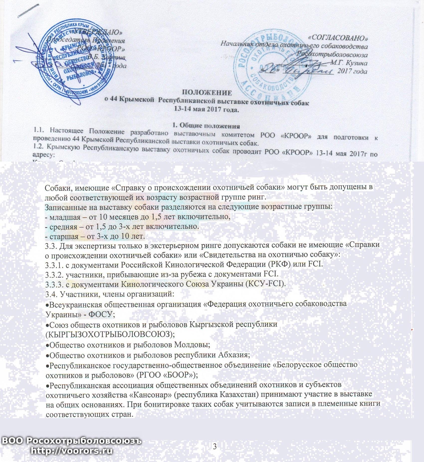 Сообщение Re: Крымская Республиканская выставка охотничьих собак - 201 «СОГЛАСОВАНО» Начальник отдела охотничьего собаководства Росохотрыболовсоюза М.Г. Кузина