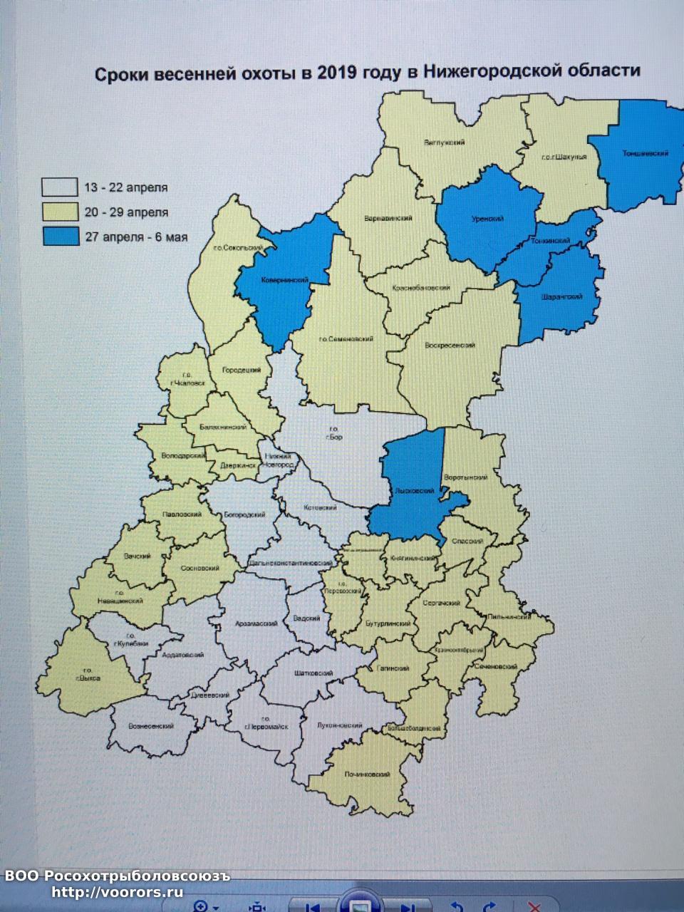 8. Нижегородская областьРазделены на южную и северную зоны по фарватеру реки Волгасо второй субботы апреля сроком на 10 дней; с третьей субботы апреля сроком на 10 дней.