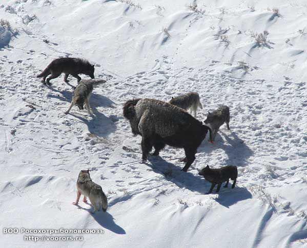 Так обстояло дело с волками и собаками в США, Канаде (Деннлер, 1966; Новак, 1967), позже это стало характерным и для ряда равнинных районов нашей страны (Гурский, 1975; Рябов, 1973, 1978). В местах же, где популяции волка столь активно не разрушались (Казахстан, Кавказский заповедник и его окрестности), "дружбы" волков с собаками не было.