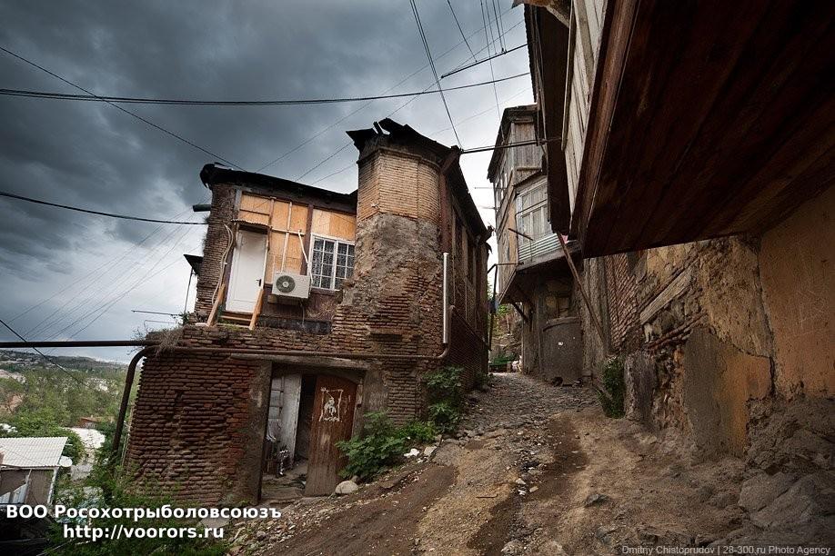 В первый день идём в старый город. Шок. Сотни обветшалых деревянных и каменных домов. Наполовину развалившихся. Где-то нет стены, но в нескольких окнах горит свет, где-то отвалился пол у одной квартиры, но в остальных живут люди. Обходим накренившиеся балконы, которые могут упасть нам на голову. Асфальт разбит или отсутствует.